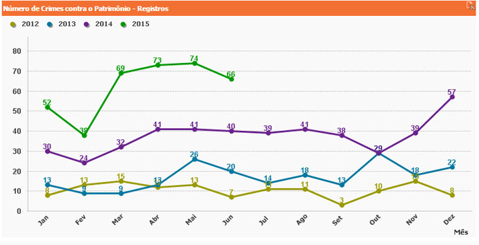 Os números mostram que houve um aumento de roubos de 2012 a 2013, saltando de 58 para 90 – a comparação estatística é referente aos primeiros seis meses do ano. Mas, no primeiro semestre de 2014, esse tipo de crime mais que dobrou, chegando a 208.