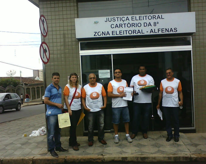 Integrantes do Movimento em frente o Cartório Eleitoral (Foto: Alessandro Emergente)