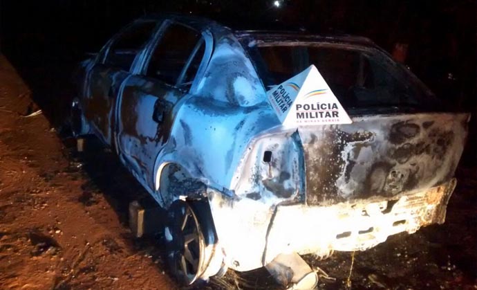 O carro de Joãozinho foi encontrado em chamas, próximo ao Distrito Industrial (Fotos: PM e Arquivo/Alfenas Hoje)