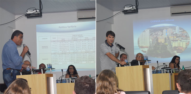 Os vereadores Tadeu Fernandes (PTC) e Reginaldo Flauzino (PHS) também fizeram um forte discurso contra a ação da Copasa em Alfenas. Flauzino chegou a defender o rompimento do contrato – a concessão teve início em 2003 e tem término em outubro de 2033.