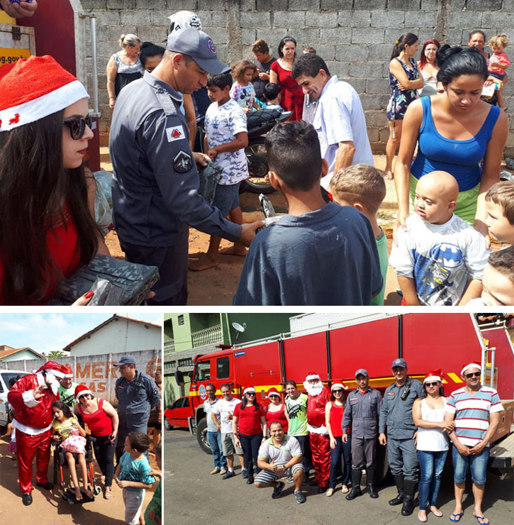 Na manhã de sábado, uma outra iniciativa contou com a participação dos bombeiros, que – juntamente com voluntários – participaram da distribuição de brinquedos às crianças. O caminhão do Corpo de Bombeiros, com o papai noel, percorreu bairros da cidade, fazendo a distribuição.