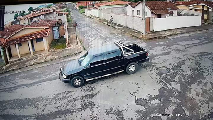 Por volta das 13h10 de segunda-feira, o veículo foi visto circulando pela área central de Areado. Imagens de um sistema de monitoramento particular, obtido pela Polícia Militar, mostram o carro circulando pela cidade, além do suspeito que teria batido a pick-up em uma cerca, segundo testemunhas.