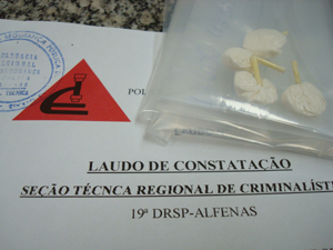 Acima, droga apreendida no Jd. Boa Esperança; períca constata ser cocaína. Abaixo, droga que saiu do número 70, da Rua Mato Grosso.