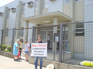 Itamar Silva, conhecido pela militância política, iniciou na tarde desta segunda-feira um protesto em frente o Fórum Milton Campos. Ele reclama da atuação da Justiça Eleitoral local que aprovou as contas de campanha do prefeito reeleito Pompilio Canavez.