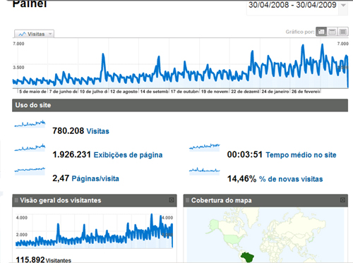 Somente nos últimos doze meses, o Portal registrou 780.208 mil visitas de 115.892 computadores. Neste período, as visitas dos internautas foram provenientes de 550 cidades e 42 países abrangendo os seis continentes. A maioria dos acessos acontece durante a semana, o que mostra que muita gente só tem acesso a internet no trabalho.