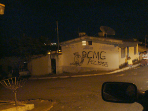 Outro detalhe que chama a atenção na rua Mato Grosso é uma pichação feita na parede de um imóvel. As letras fazem uma alusão ao PCC (Primeiro Comando da Capital) e PCMG, que, segundo fontes policiais significa Primeiro Comando de Minas Gerais.