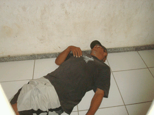 Everton aproveitou o chão da cela para dormir. Ele foi preso com arma branca e DVD sem procedência