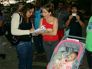 No manifesto da tarde de hoje a briga entre empresa e instituição privada mostrou que o maior prejudicado é, sem duvida, quem realmente necessita do transporte. É o caso de uma jovem mãe que leva sua filha de apenas quatro anos, três vezes ao dia, ao Hospital para fazer tratamento fisioterápico.