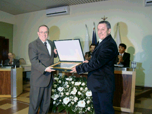 O juiz Paulo Barone Rosa recebeu, nesta quinta-feira (20/8), o título de cidadão honorário de Alfenas. A homenagem foi acompanhada por personalidades do meio jurídico, política e até cultural. O plenário ficou lotado.