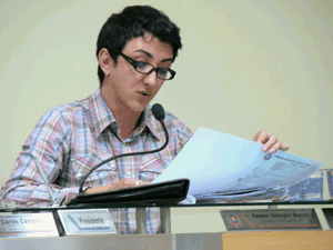 Os vereadores Sander Simaglio (PV) ao ler ofiícios e o petista Antônio Anchieta de Brito (Cheta). Ambos divergiram em plenário