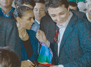 Marina da Silva e Sander Simaglio, em BH, no momento da entrega da bandeira