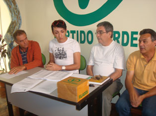 A coletiva foi feita na sede do PV de Alfenas e contou com a participação do candidato a prefeito Marcos Duarte (Marcão/PPS), derrotado nas duas últimas eleições. Sander Simaglio (PV) foi apresentado como candidato a deputado federal e Décio Paulino (DEM). A notícia foi antecipada na quarta-feira pelo Alfens Hoje.