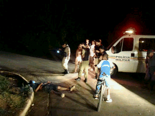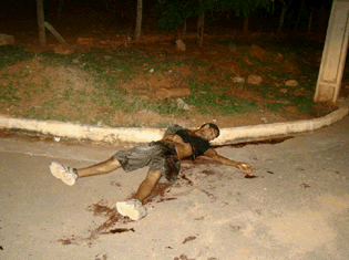 O corpo estava na esquina da rua Perobas com a avenida Lincoln Westin. Ao seu lado havia pegadas com mancha de sangue, que podem ser do assassino.