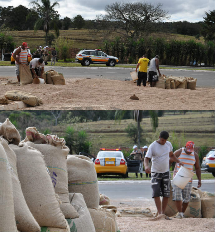 Os policiais rodoviários entraram em contato com o proprietário para que a carga fosse retirada da pista. Assim, quatro pessoas foram contratadas e passaram a tarde recolhendo e ensacando o feijão. “A intenção do dono é recuperar o máximo possível da carga. Acredito que 11 toneladas serão recuperadas. Só deve ser dispensado o que estiver muito misturado aos ciscos e à poeira do asfalto”, explicou o policial no período da tarde.