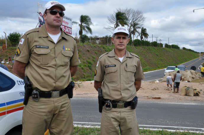 Acima, o sargento Ricardo e o sargento Wander, da Polícia Militar Rodoviária, que estiveram no local