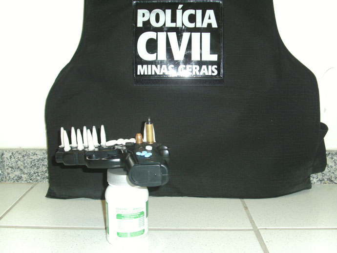 Na casa do suspeito, segundo o delegado, os policiais localizaram 10 pinos de cocaína, seis comprimidos de ecstasy, além de duas munições de arma de fogo: uma de calibre .38 intacta e outra de calibre .40, que estava deflagrada. Também foi encontrado no local uma arma de brinquedo. Batista alegou, em depoimento à Polícia, que a droga era para consumo próprio e que as munições foram encontradas na rua.