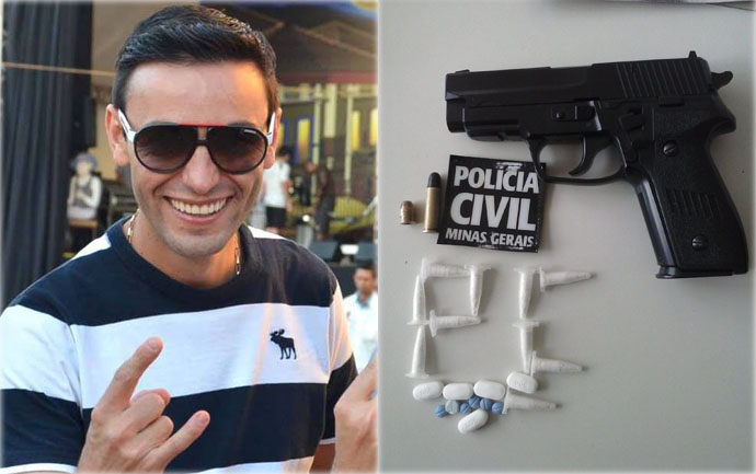 Na casa do suspeito, no Vila Teixeira, foram encontrados na tarde de quarta-feira ecstasy e cocaína, além de munições e uma réplica de uma arma (Fotos: Polícia Civil e Facebook/Reprodução)