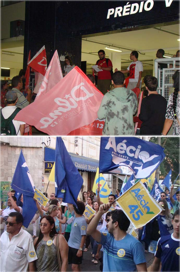 A campanha expõe até a diferença ideológica entre os universitários. No final da tarde de quarta-feira, estudantes do curso de medicina da Unifenas (Universidade José do Rosário Velano) fizeram uma passeata no centro de Alfenas em apoio ao candidato tucano. Eles saíram do Terminal Rodoviário e foram até a Praça Getúlio Vargas, acompanhados do prefeito Maurílio Peloso (PDT) e de vários secretários municipais.