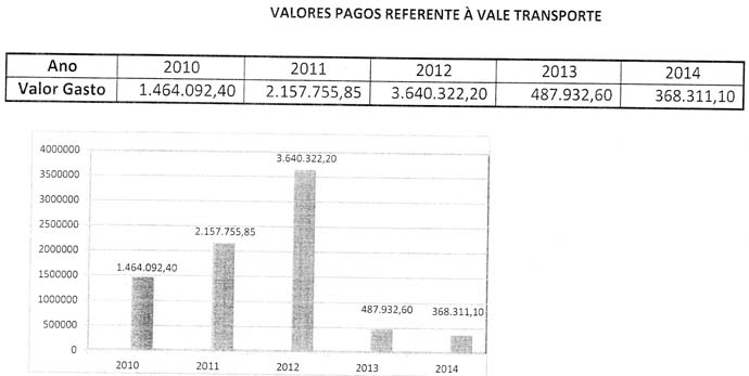Naquele ano, as despesas com vale-transporte atingiram R$ 1.464.092,40 e, no ano seguinte (em 2011), cresceram para R$ 2.157.755,85.