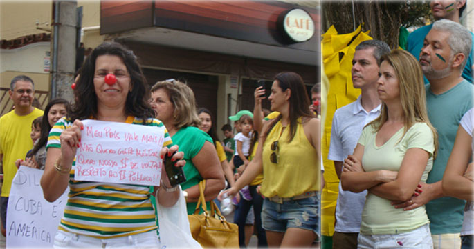 Até a imprensa foi alvo de críticas. Ao elogiar o trabalho da PM, Solon Cruxen, um dos manifestantes, tentou jogar a corporação contra a imprensa ao dizer que a mídia, muitas vezes, explora ações negativas da PM. Abordado pela reportagem para que explicasse seu ponto de vista, recuou e se limitou ao dizer que apenas critica a “ideologia por trás dos métodos do PT”.