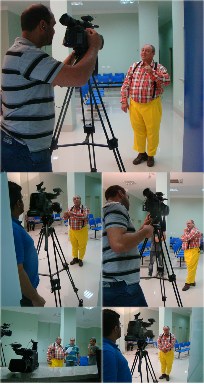No final da manhã, logo após conhecer o trabalho que vem sendo feito pela diretoria para ampliar os serviços da Santa Casa, o ator vestiu o figurino de seu personagem mais famoso, o caipira “Nerso da Capitinga”, para gravar peças publicitárias da nova etapa do Sua Sorte Cap, que retorna em abril.