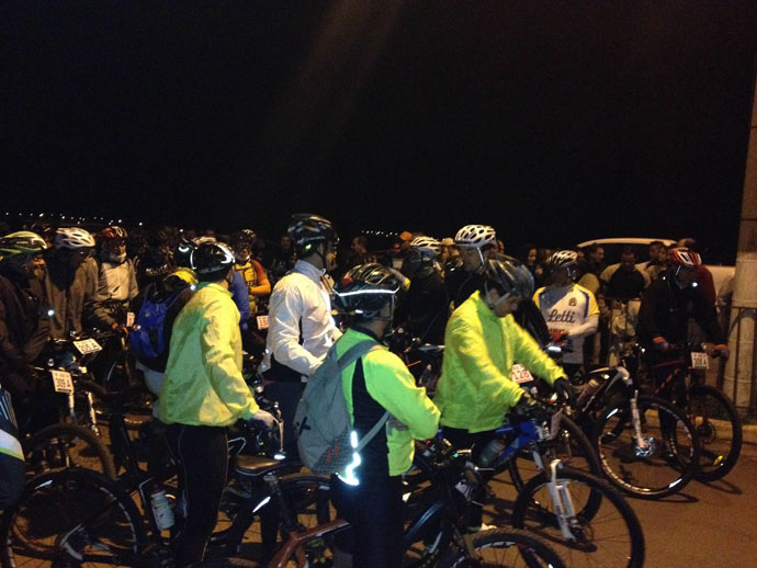 Debaixo de neblina, mais de 80 ciclistas iniciaram, na noite de quinta-feira (feriado de Corpus Christi), um trajeto de pouco mais de 265 km até Aparecida do Norte (SP). A largada foi por volta das 20h no portal da Aparecida, em frente a Capela de São Francisco de Assis, no bairro Pinheirinho. Os ciclistas terão que fazer o percurso em até 20 horas.