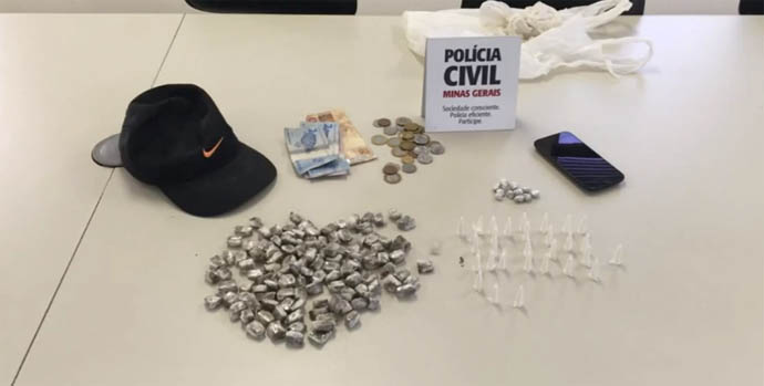 No bairro Santa Luzia, foram apreendidos 42 pinos de cocaína, 26 porções de maconha, 55 pedras de crack e R$ 117 em dinheiro. Um menor foi apreendio.
