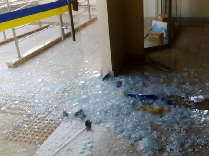 Criminosos arrombaram a porta de vidro de agência dos Correios em Areado (Foto: Polícia Militar)