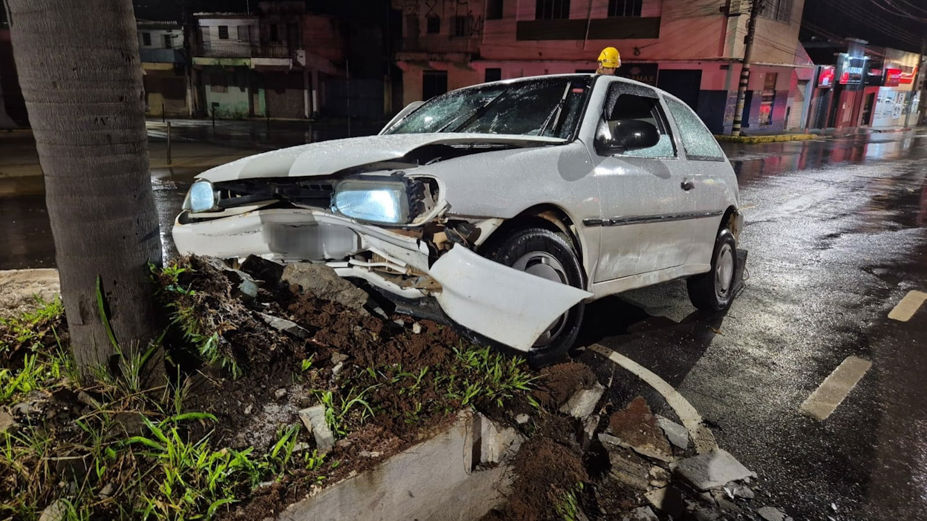 Um veículo de passeio, ocupado por dois homens e duas mulheres, colidiu contra o canteiro central da avenida José Paulino da Costa durante a madrugada deste domingo.
