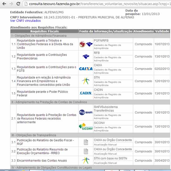 No final de semana, o ex-prefeito Luiz Antônio da Silva (Luizinho/PT) publicou no facebook o link do site do Tesouro Nacional, que comprova que o município está com a certidão em dia com o INSS.