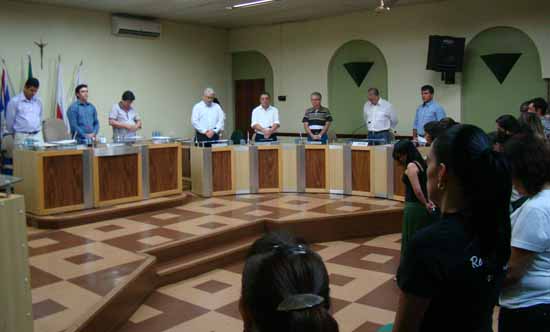 Vereadores e o público ficaram em pé e em silêncio durante um minuto em homenagem as mais de 200 pessoas mortas em uma tragédia em Santa Maria (RS) no final de semana