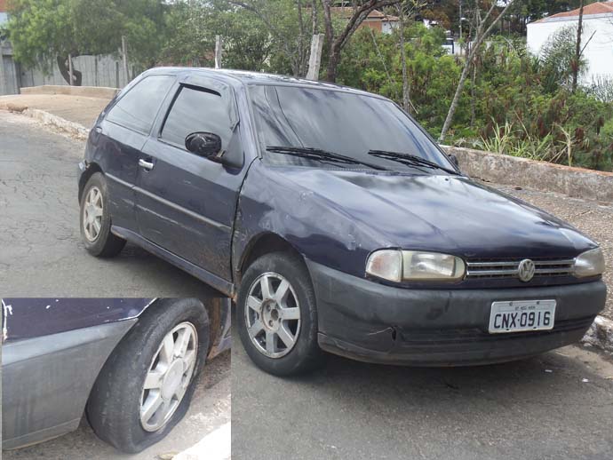 O Gol, com placa de Mogi Mirim (SP), foi abandonado no Vista Alegre. No detalhe, o