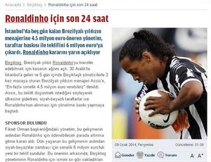 Segundo o jornal FotoMac, a proposta por Ronaldinho é de seis milhões de euros anuais, aproximadamente R$ 19 milhões. Assis teria se reunido por três vezes com os dirigentes turcos, desde 30 de dezembro, para conversar sobre a ida do craque. A resposta viria até esta sexta-feira.