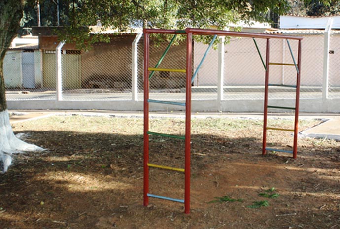 A reforma inclui a solda, pintura e recuperação de brinquedos como o gira-gira, gangorras, balanços e escorregadores, além da manutenção de alambrados e limpeza.