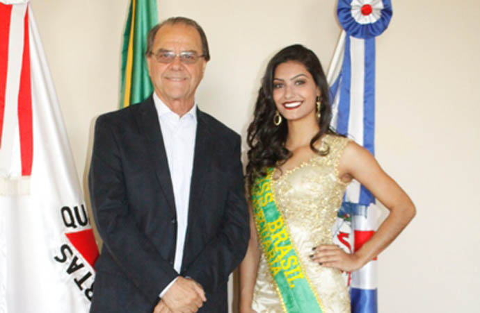 Ao lado do prefeito, a Miss Alfenas 2015 Denise Tavares (Foto: Ascom/Prefeitura)