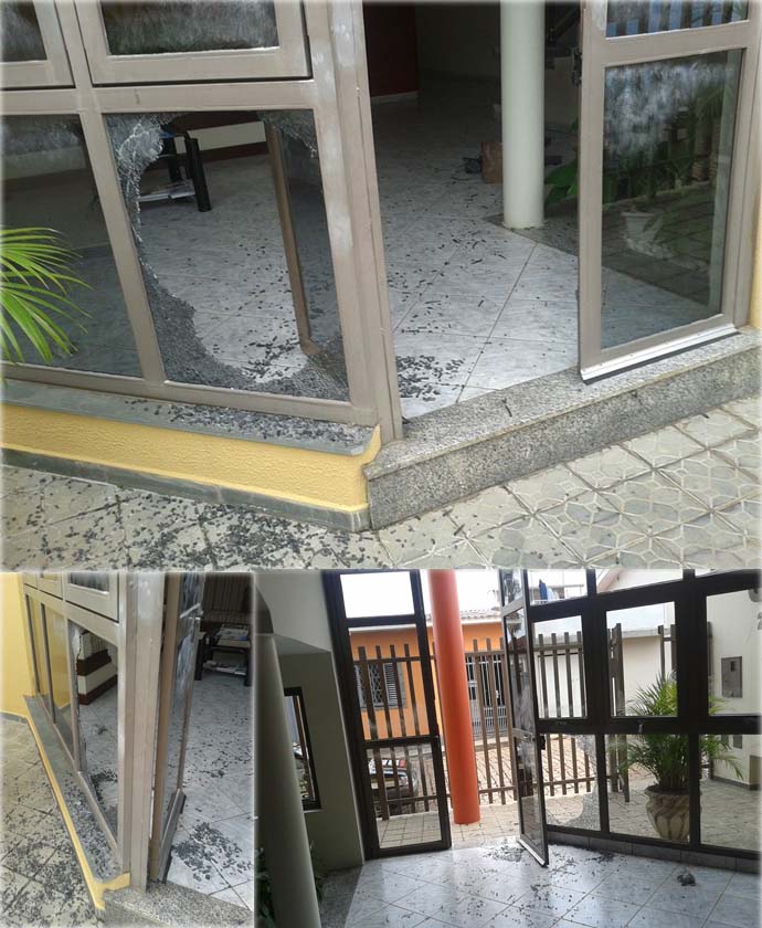 Nas fotos acima, imagens do arrombamento ocorrido no ano passado, quando também foi furtado um aparelho de TV (Foto: Maria Lúcia/Arquivo)