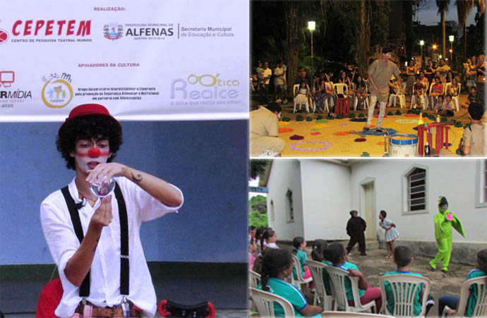 A 5ª Edição da Mostra de Teatro de Rua em Alfenas comprovou a qualidade e diversidade dos espetáculos apresentados. Realizada pelo Centro de Pesquisa Teatral Mundo (Cepetem) em parceria com a Secretaria Municipal de Educação e Cultura, a Mostra foi de 05 a 08 de novembro e trouxe um repertório variado com peças infantis e adaptações de clássicos como: “Otelo” de Shakespeare e “A Farsa do Advogado Pathelin”, peça de teatro francesa composta no fim da Idade Média e do tradicional circo.