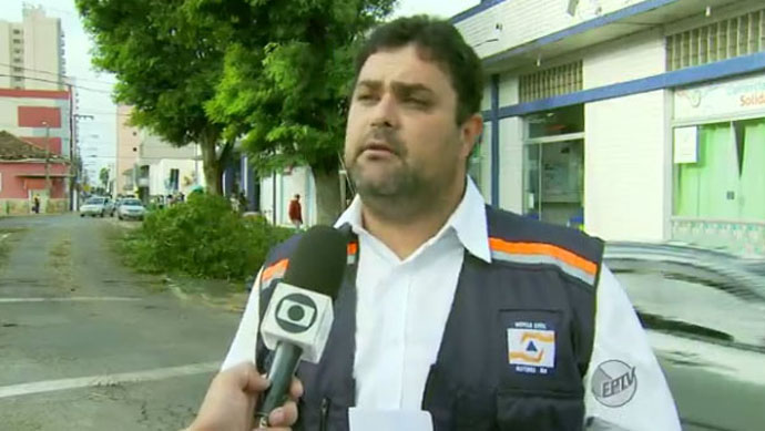 O coordenador municipal da Defesa Civil, Marcelo Lopes, calcula que o material doado para Alfenas seja da ordem de R$ 40 mil. Acima, ele aparece em uma entrevista à EPTV na última segunda-feira (Foto: Reprodução/EPTV)