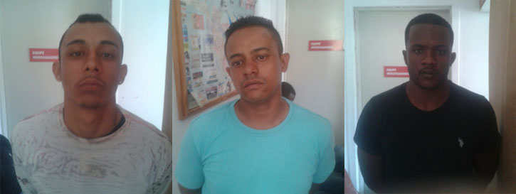 O investigador, então, foi atrás dos dois suspeitos e conseguiu rendê-los. São eles Carlos Raimundo da Silva Filho, 26 anos, e Deivid Júnior Castro Melo, 21 anos. Em seguida, pediu apoio da Polícia Militar. Os militares conseguiram prender o terceiro suspeito, Diogo Pinheiro da Silva, 26 anos, que estava nas proximidades da agência.