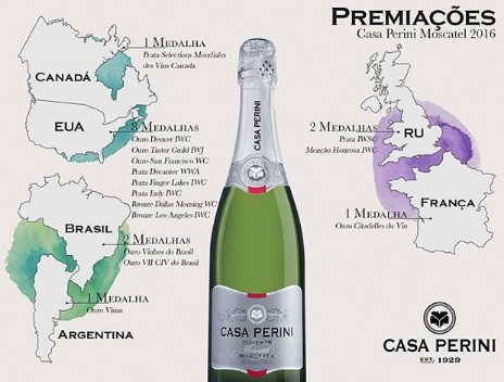 O espumante brasileiro foi eleito o quinto melhor vinho do mundo. Da Vinícola Perini Ltda., do Brasil, a bebida é um espumante Moscatel com perfil aromático característico da variedade Moscato, com um excelente equilíbrio entre acidez e açúcar. Seu preço médio é de R$ 50.