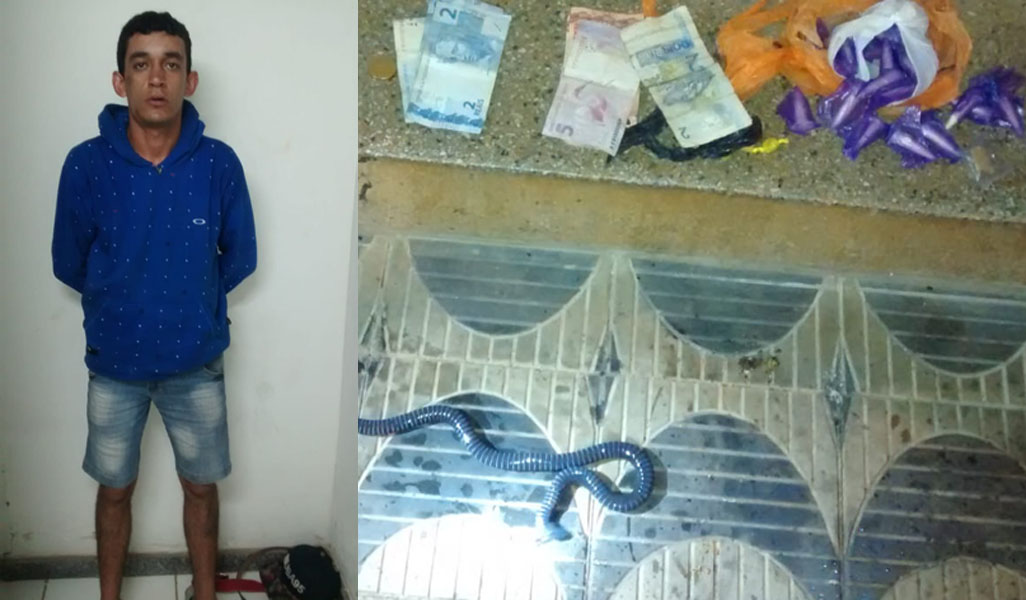 A prisão foi no bairro Santa Rita, em uma área conhecida pelo tráfico de entorpecentes. Os policiais receberam denúncia anônima de que haveria venda de drogas na esquina da rua João Paulino Damasceno com a rua João Vieira.