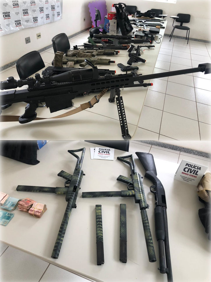 Várias armas foram apreendidas em uma operação envolvendo a Polícia Civil de Minas e de SP. Dois suspeitos foram presos.