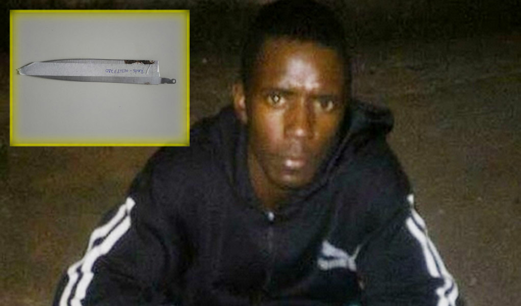 Weverton Silva, de 24 anos, foi detido em flagrante. No detalhe, a faca utilizada por ele na tentativa de assalto a um investigador da Polícia Civil de Alfenas (Fotos: Polícia Civil e Reprodução/Minas Acontece)