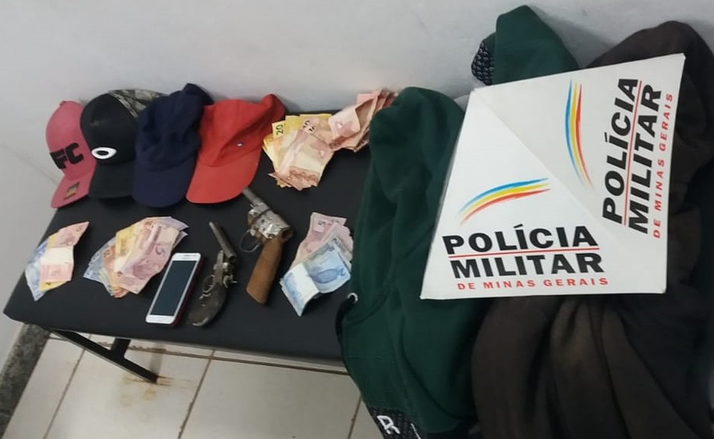 Durante a tentativa de fuga, os suspeitos jogaram para fora do carro uma réplica de arma de fogo. O grupo foi cercado e detido. Com eles, foram encontrados R$ 394 em dinheiro, que teriam sido levados do posto.