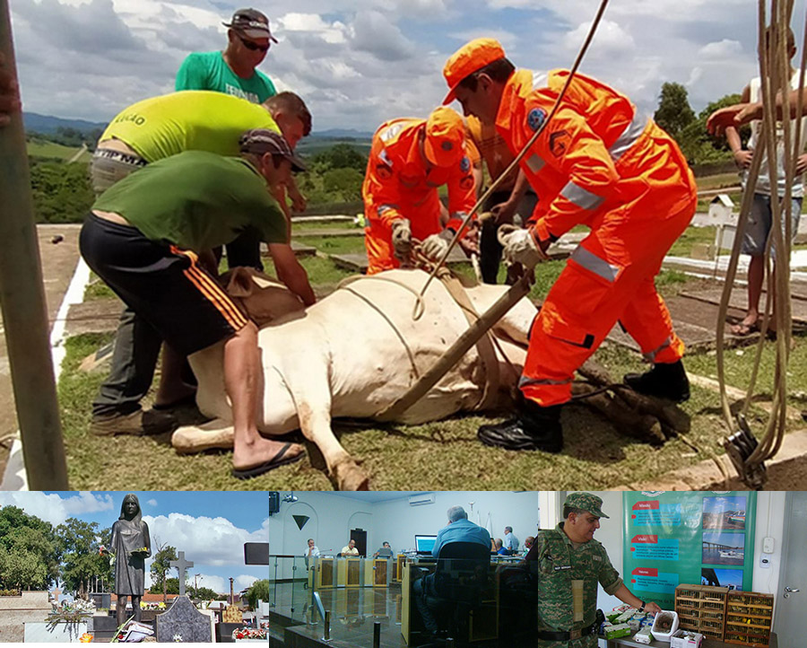 Bombeiros resgatam vaca que caiu em uma cova no Cemitério