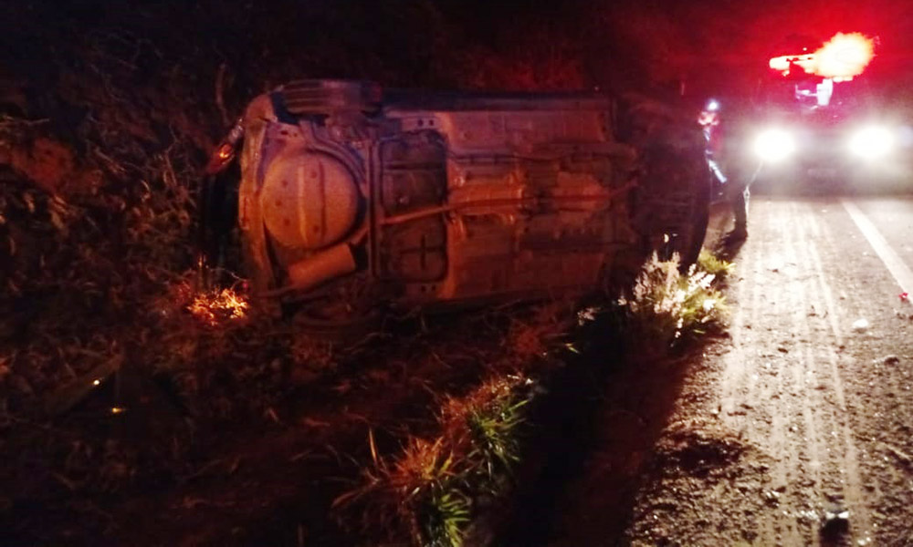 Carro capota na rodovia e motorista é socorrido