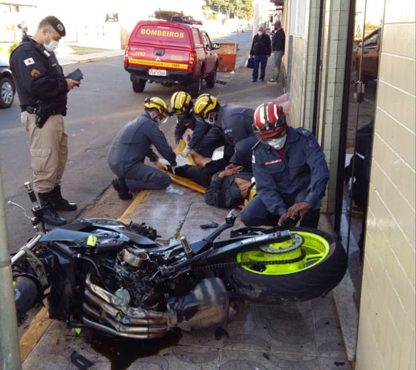 O Corpo de Bombeiros foi acionado por volta das 7h da manhã para atender a ocorrência. O motociclista, de 17 anos, estava sozinho na moto e foi encontrado pelos bombeiros caído na via, mas consciente.