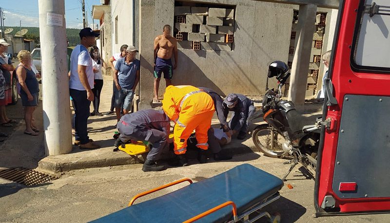 O motociclista ferido, de aproximadamente 33 anos, recebeu os primeiros socorros e foi levado para o Hospital Alzira Velano.