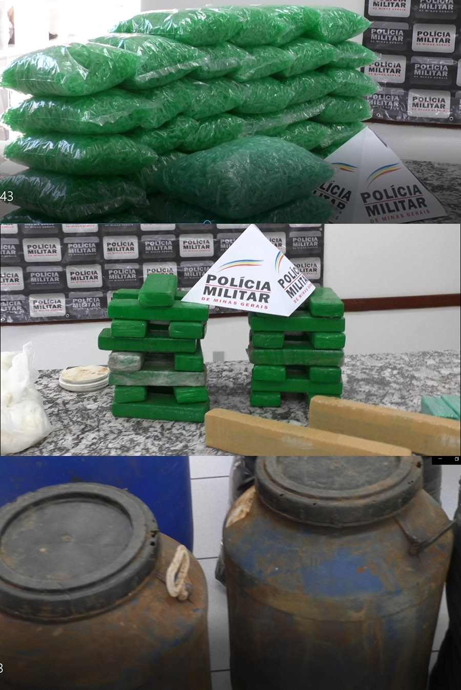 No local, a Polícia Militar apreendeu uma grande quantidade de maconha: 26,5 Kg. Também foram apreendidos 4,5 Kg de cocaína, 380 gramas de crack e várias cápsulas vazias, que são usadas para acondicionar cocaína.