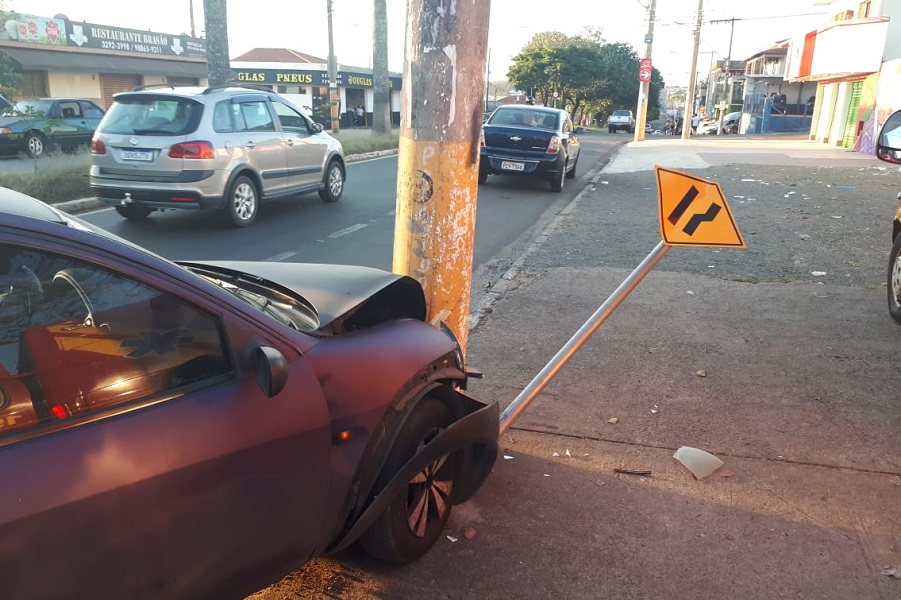 Nesta segunda-feira um carro, que descia pela avenida Governador Valadares, em Alfenas, acabou batendo em um poste de iluminação, próximo ao posto de combustível Tamandaré.
